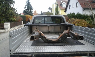 Finally we got our pickup back home, ready for the fresh built diesel engine...Home Sweet Home, it`s been 2 years now that the old engine died. Endlich ist der Pickup wieder daheim, 2 Jahre ist es her wo der Motor verreckt ist. Home Sweet Home.